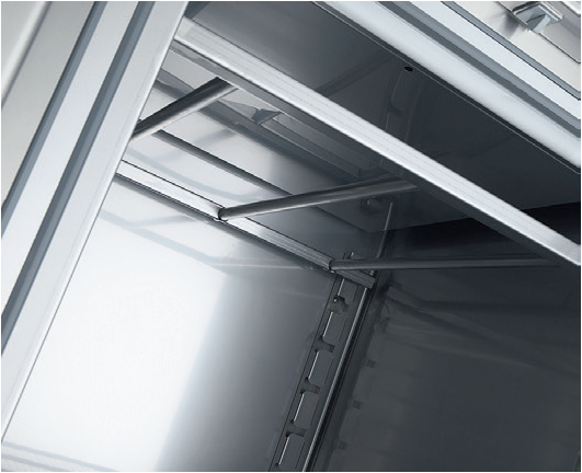 – Estantes interiores de alambre en acero plastificado, regulables en altura