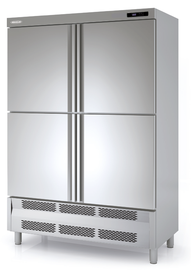 – Puertas de apertura reversible, con sistema de cierre automático y burlete magnético (permanece abierta al superar los 90° de apertura)