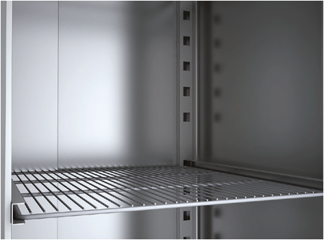– Estantes interiores de varilla en acero plastifi cado, regulables en altura