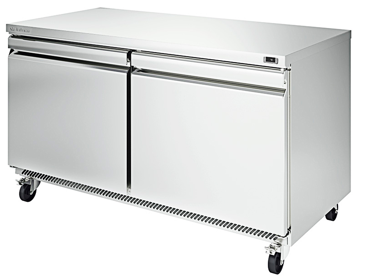 Armario undercounter de refrigeración UC 48 R de INFRICO, con puertas dotadas de bisagras para un retorno automático y presión permanente durante el cierre.