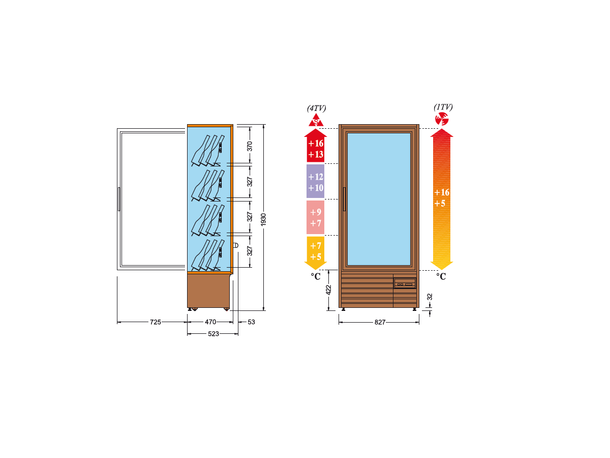 Armario expositor de vinos ENOPRESTIGE 400 (4 TV) de EUROFRED con estantes en escalera para una correcta visualización.