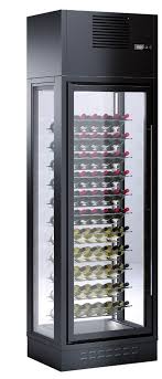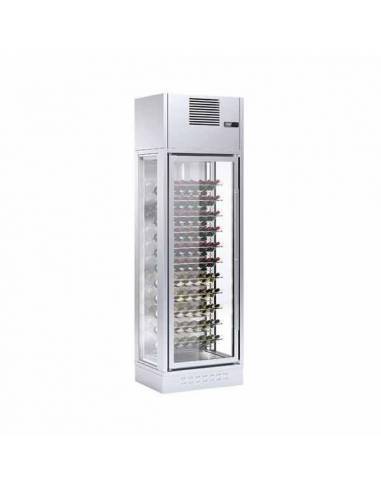 Armario refrigerado expositor de vinos central 1 puerta WI-1C-26 de EDENOX, con pared posterior totalmente acristalada, ideal para utilizarse como elemento isla y separar ambientes.