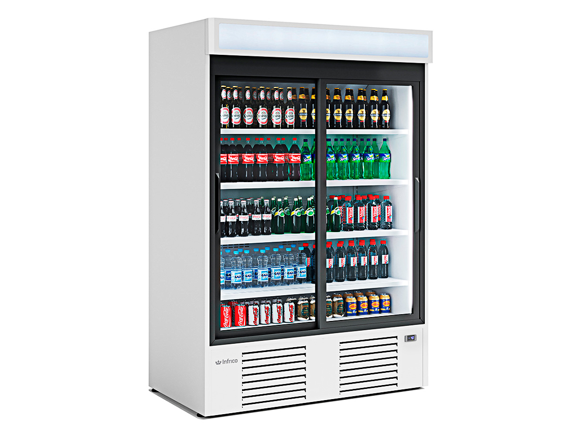Armario expositor refrigerado ERC 130 de INFRICO, con interior en acero plastificado gris.