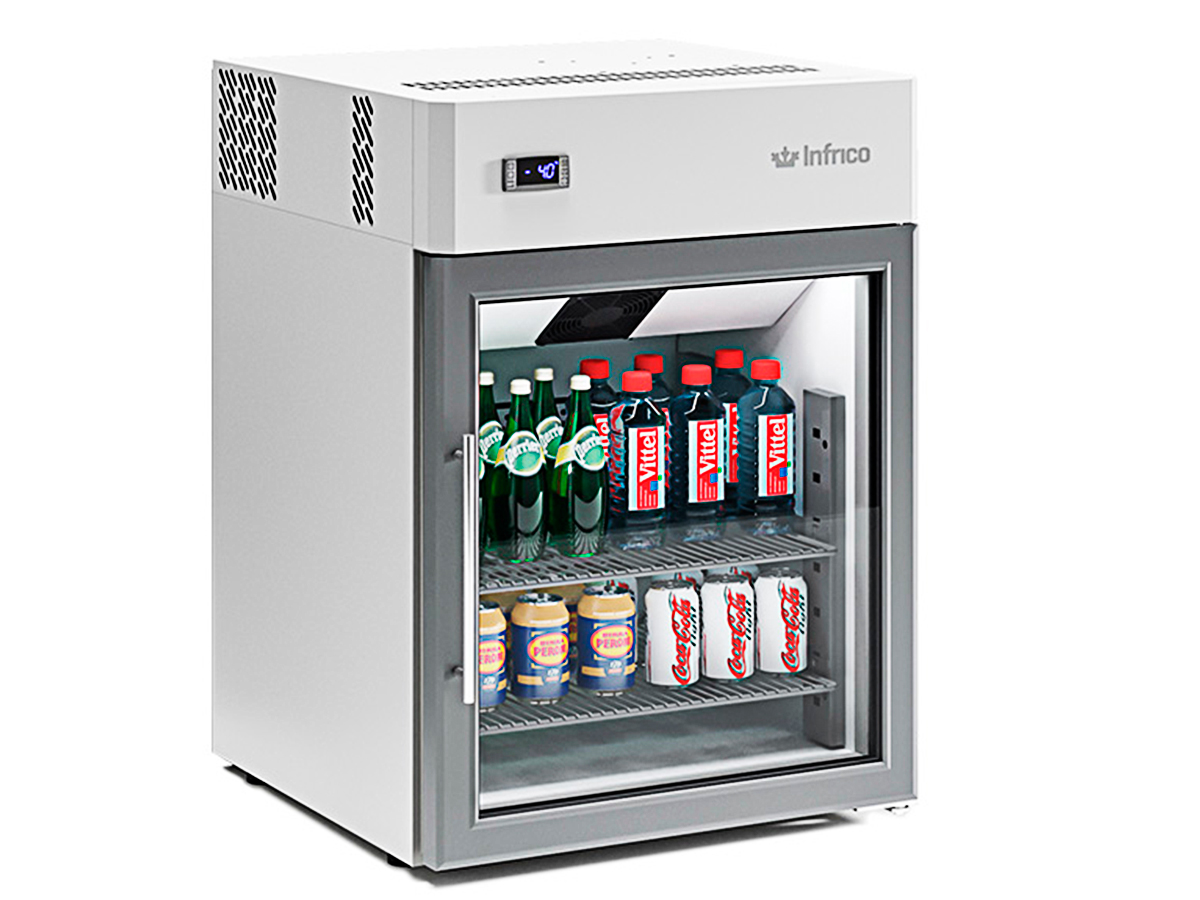 Expositor refrigerado ERC 15 de INFRICO, con interior en acero plastificado gris.