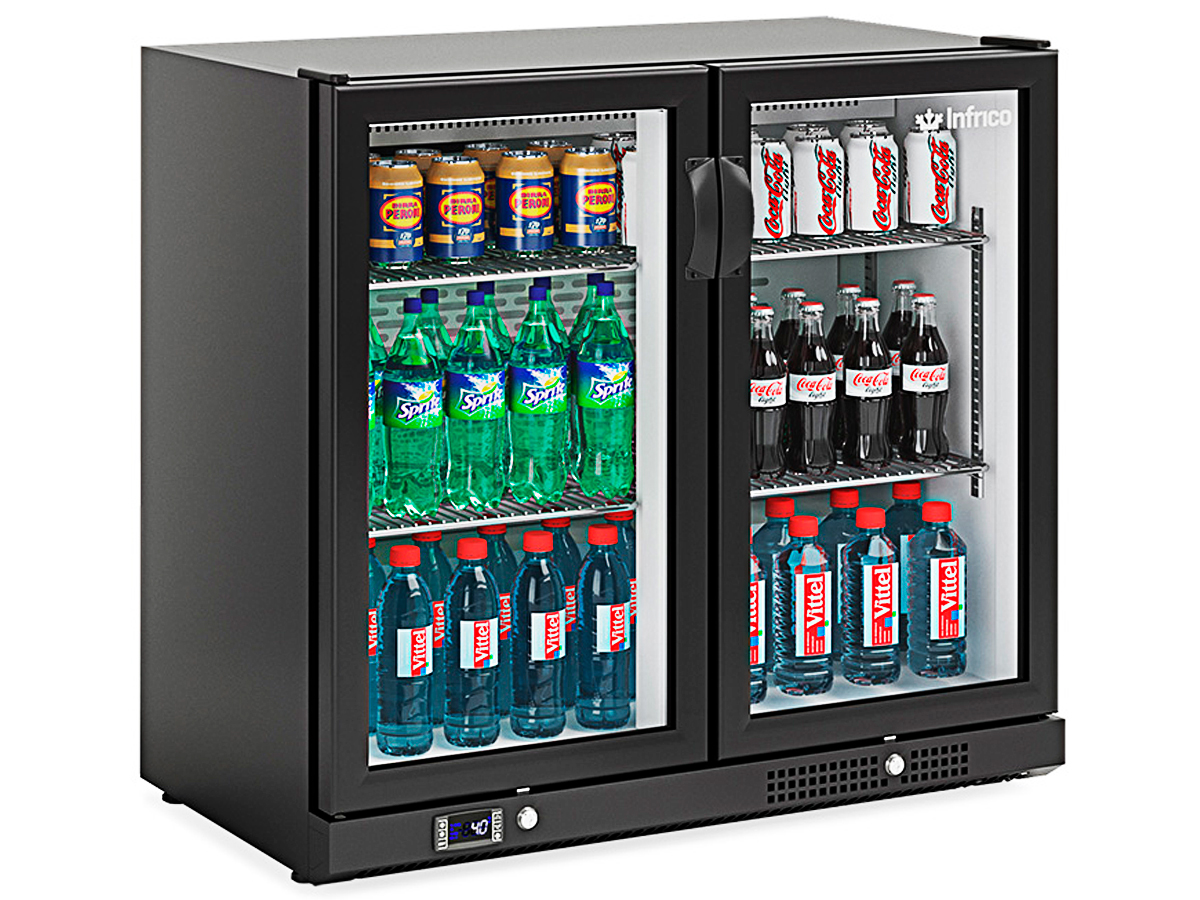 Expositor Refrigerado ERV 25 SH de Infrico, con exterior en chapa PVC plastificada de color negro.