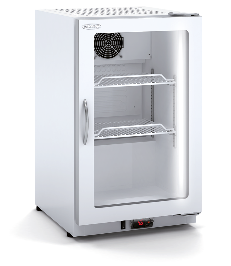 – Estantes de alambre de acero plastificado, regulables en altura.