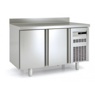 – Encimera de acero inox AISI-304 con frente curvo y peto trasero sanitario de 100 mm (opcional sin peto)