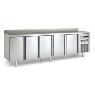 – Encimera de acero inox AISI-304 con frente curvo y peto trasero sanitario de 100 mm (opcional sin peto)