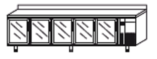 – Encimera de acero inox AISI-304 18/10 con frente curvo y peto trasero sanitario de 100 mm (opcional sin peto según modelo).