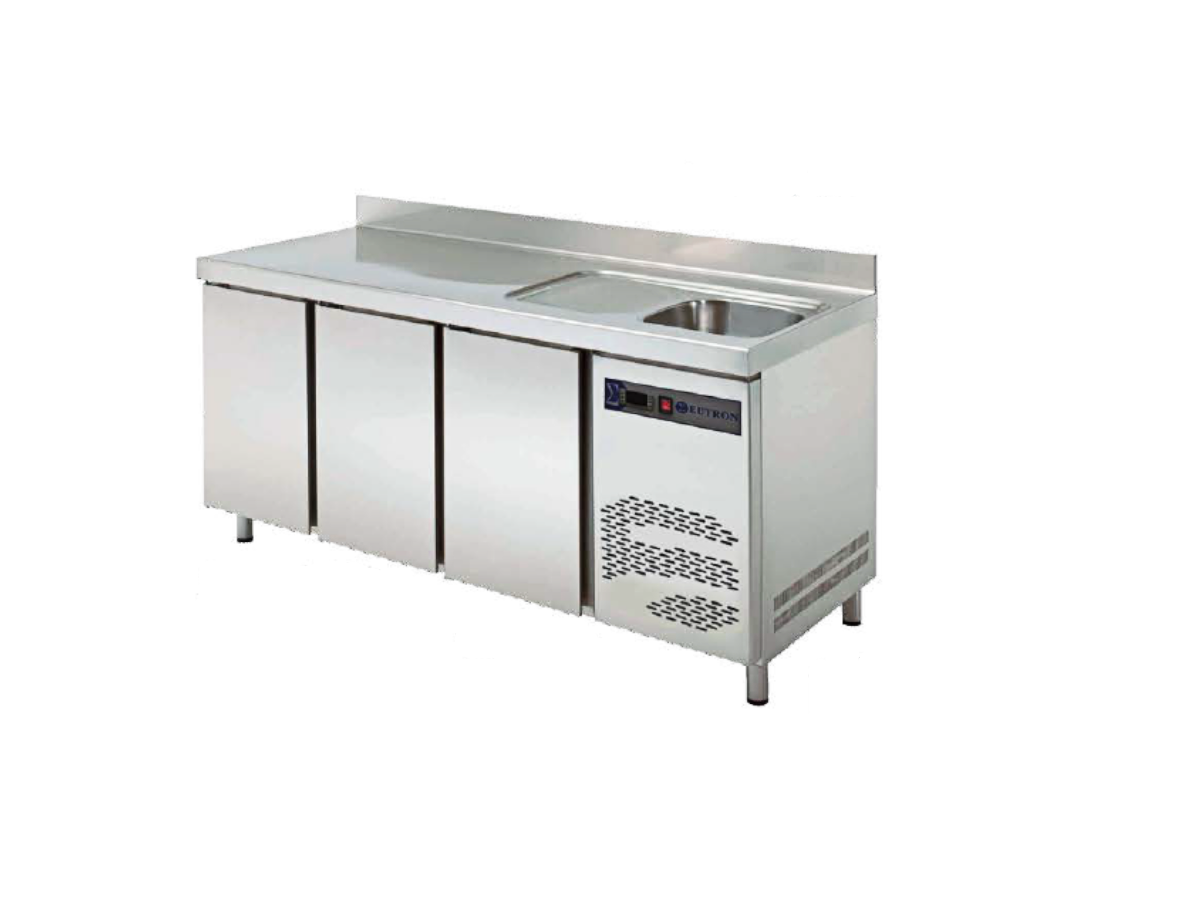 Mesa Refrigerada con Fregadero TRS-150F de EUTRON con control electrónico de la temperatura y del desescarche con visor digital.
