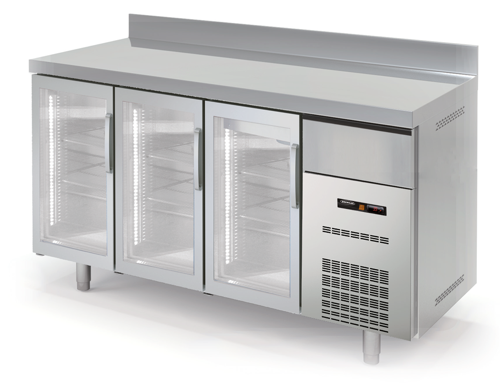 – Estantes interiores GN 1/1 de alambre en acero plastificado regulables en altura sobre guiás inox.