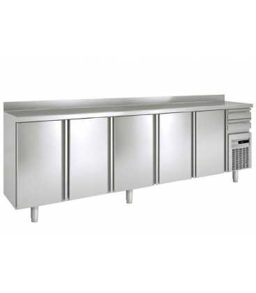 – Encimera de acero inox AISI-304 con frente curvo y peto trasero sanitario de 100 mm (opcional sin peto)