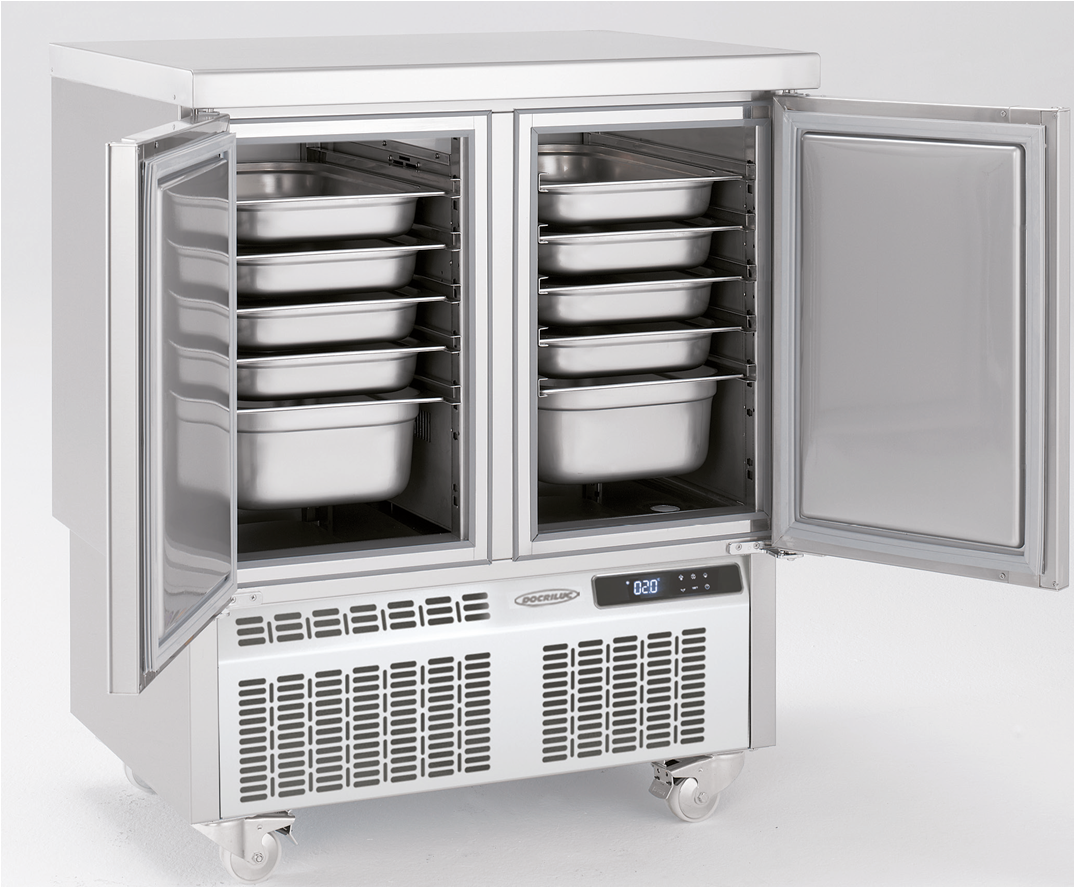 – Cajoneras inox refrigeradas desmontables sobre guías telescópicas con sistema autocierre.