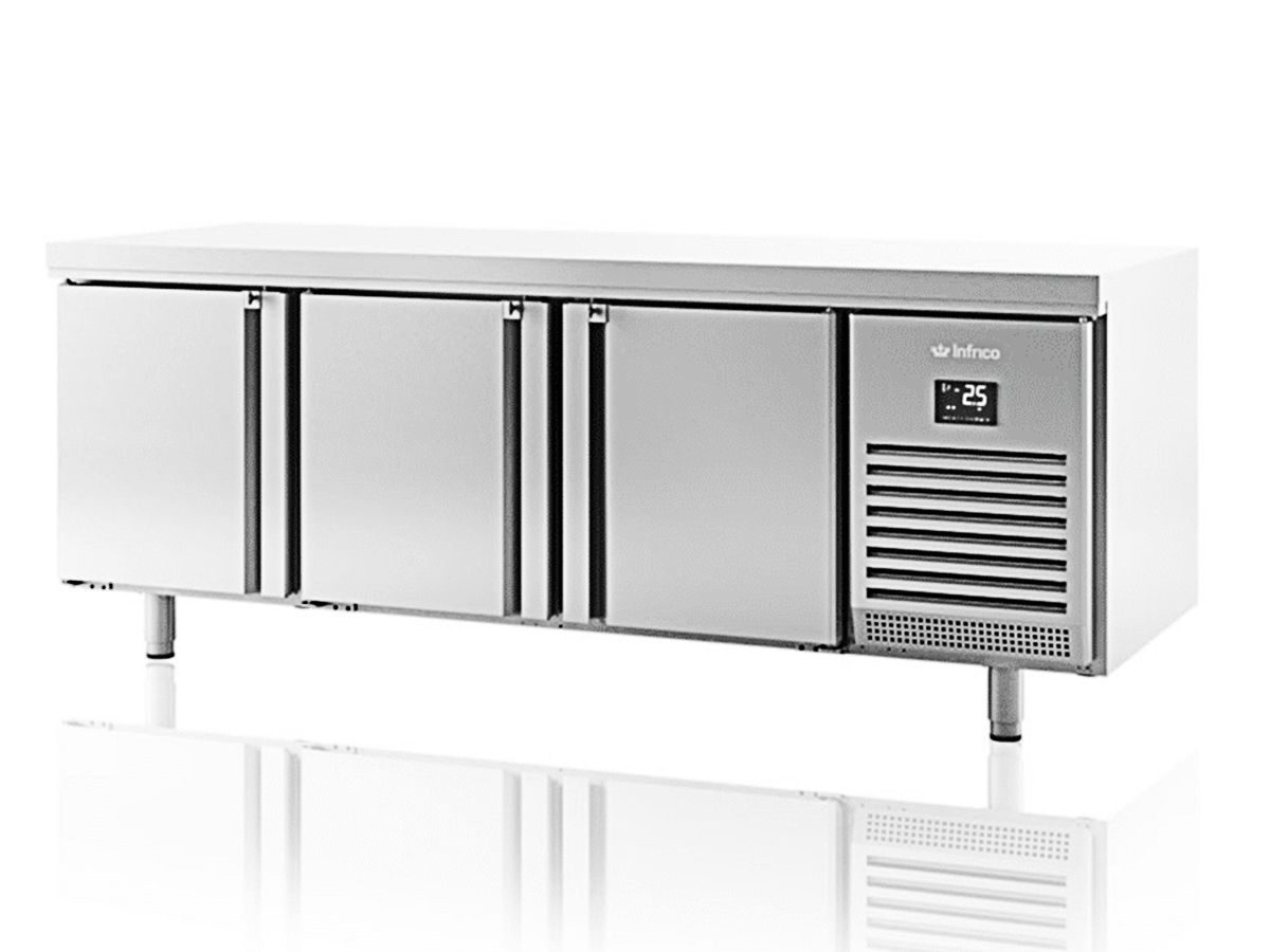 REF: MR 2190 BT Categorías: Bajo Mostradores para Pastelería, Bajo Mostradores y Mesas Refrigeradas, Frío industrial Etiquetas: 3 Puertas, 3/15 parrillas, 635 Litros, Acero Inoxidable, Infrico, infrico cambiado, Mesa de Congelación, Monofasica, Pastelería