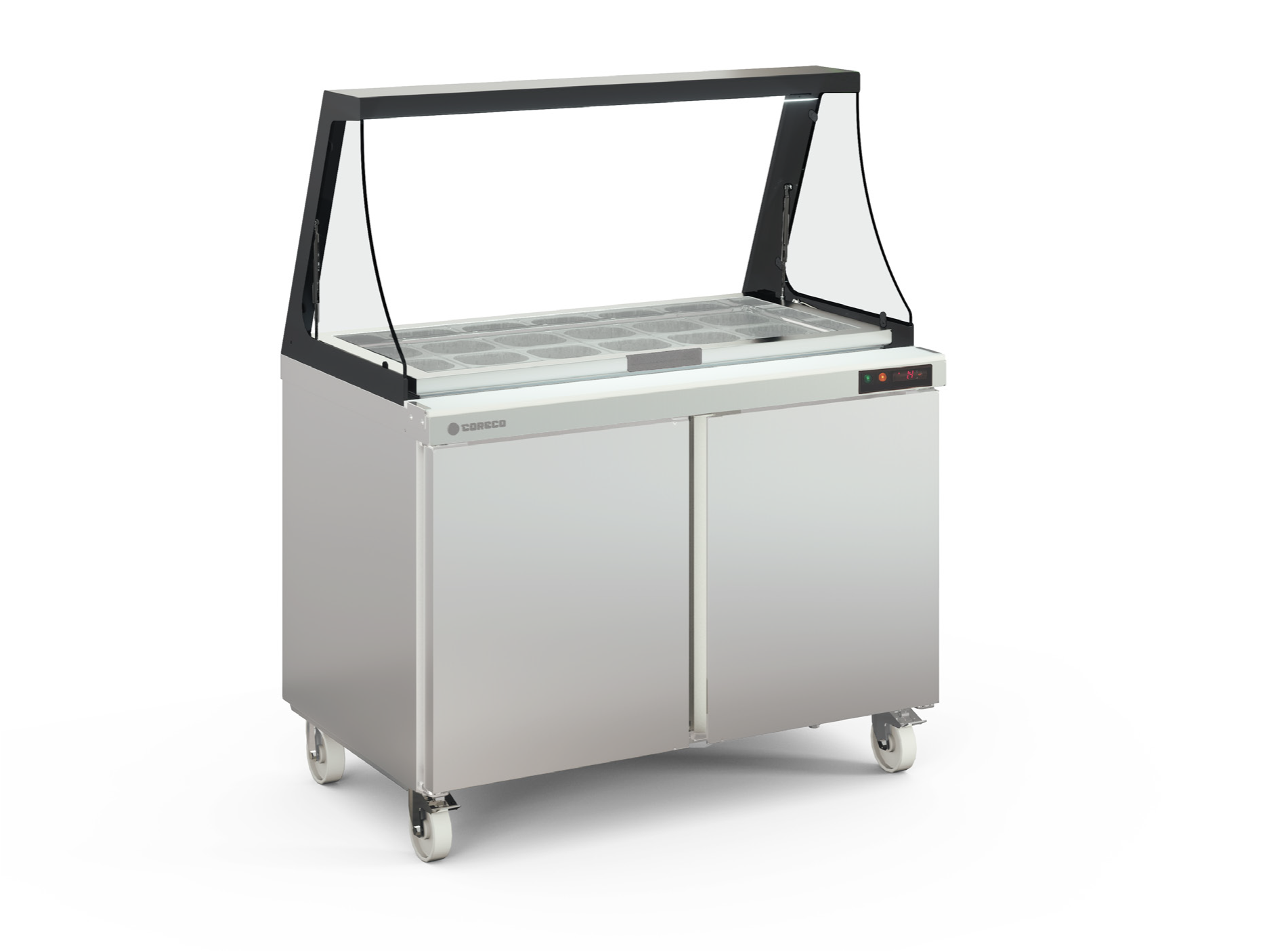 - Robusta estructura elevable, con doble cristal para mantener la temperatura del área de cubetas