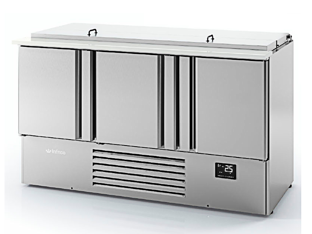 Mesa refrigerada para ensaladas ME 1003 BAN de INFRICO, en acero inoxidable AISI 304 y estructura compacta totalmente inyectada.