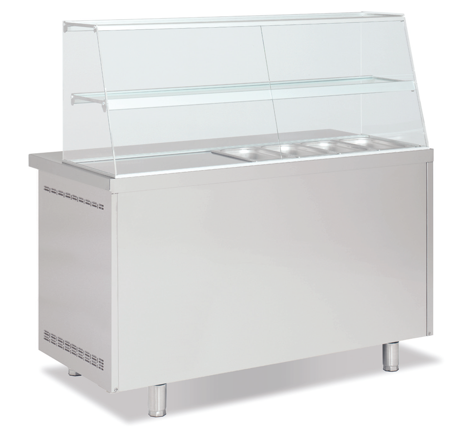 – Encimera inox con capacidad cubetas GN 1/3-100 (ver detalle).