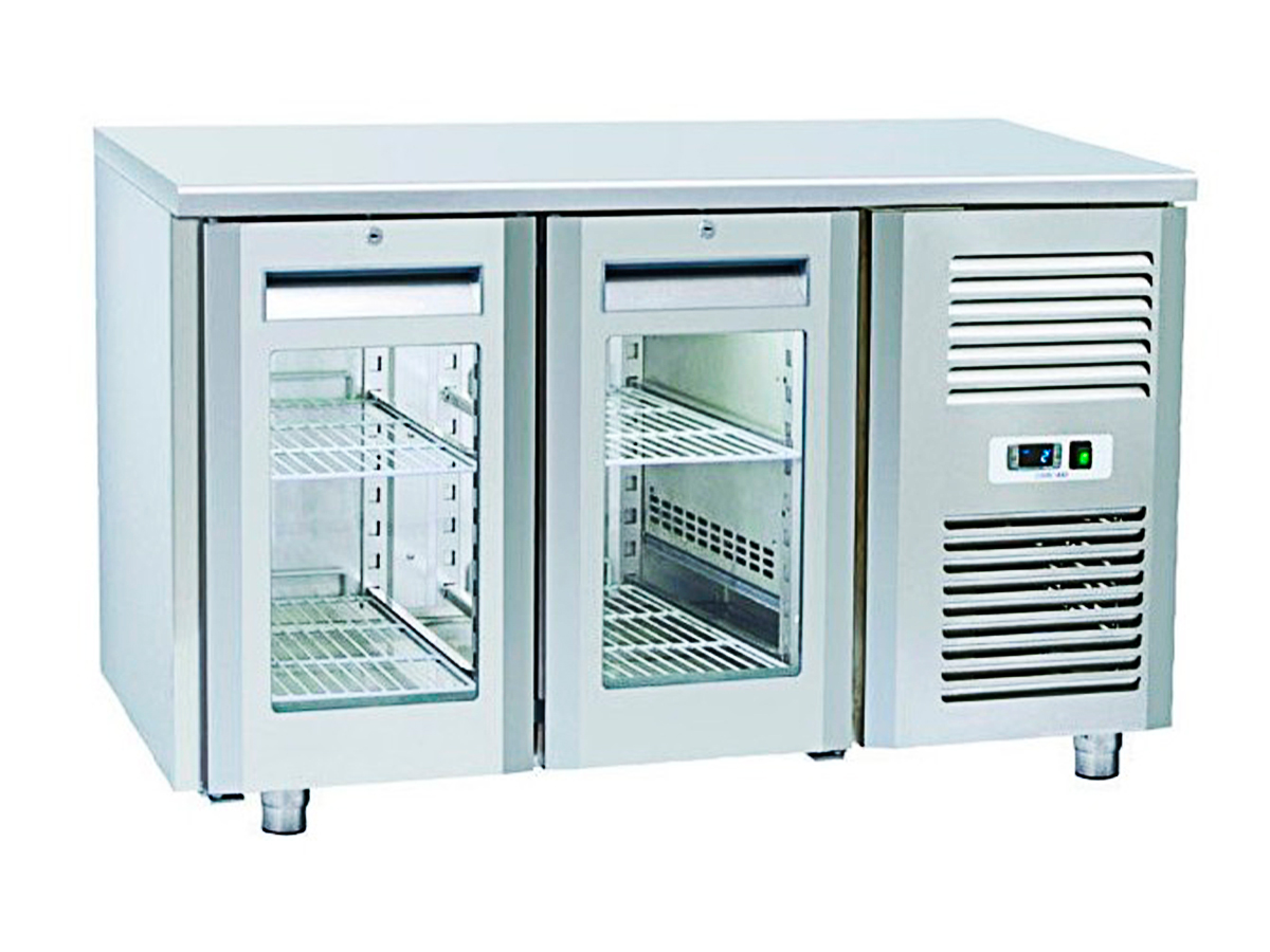 Mesa fría gastronorm de refrigeración sin peto QRG 2100 de EUROFRED, de acero inoxidable y puertas dotadas de auto cierre.