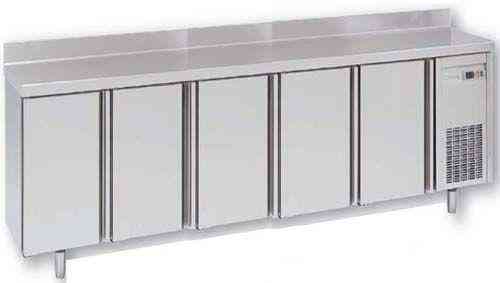 – Encimera de acero inox AISI-304 18/10 con frente curvo y peto trasero sanitario de 100 mm (opcional sin peto)