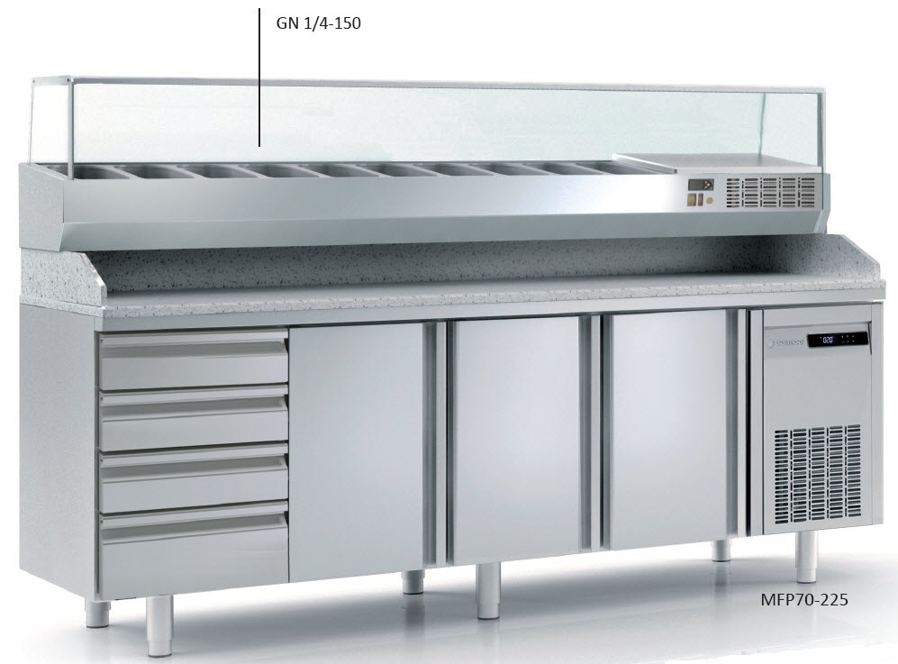 – Temperatura de trabajo mesa pizza -2ºC +8ºC a 38ºC ambiente