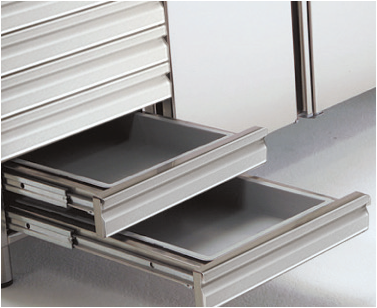 – Cajoneras inox refrigeradas desmontables sobre guías telescópicas con sistema autocierre.
