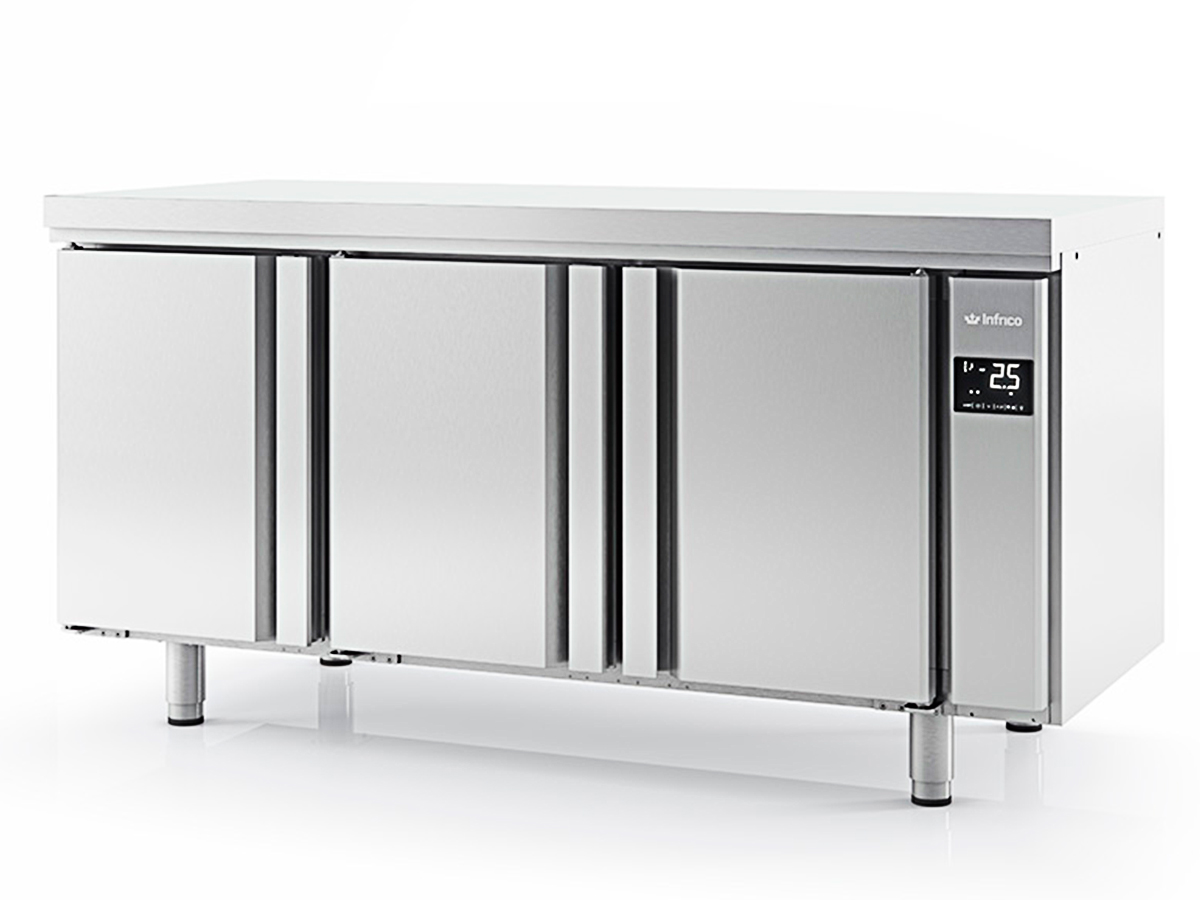 Mesa refrigeración pre-instalada MR 2190 GR de INFRICO, en acero inoxidable AISI 304, aumenta en su largo 8 cm.