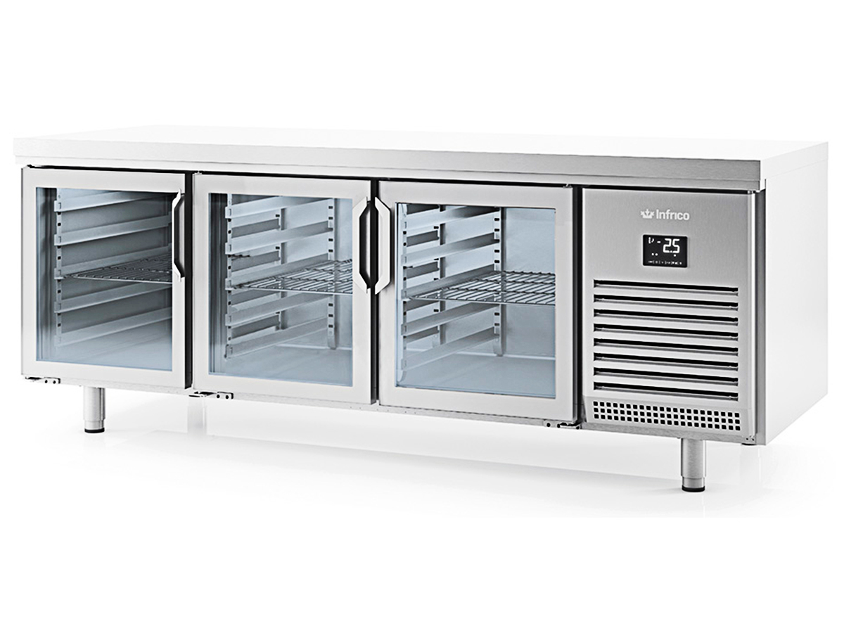 Mesa refrigerada central puertas de cristal a dos caras MR 2190 PDCR de INFRICO, en acero inoxidable AISI 304 y estructura compacta totalmente inyectada.