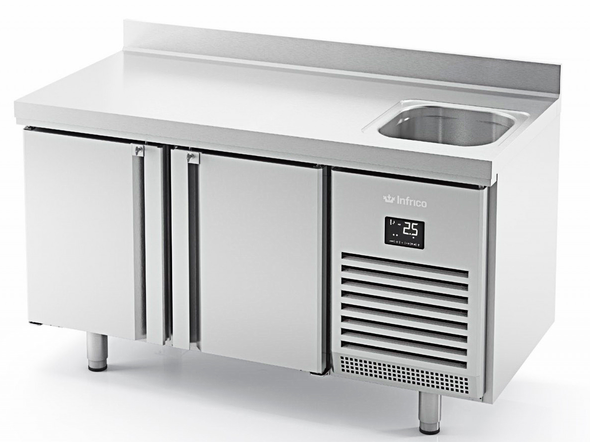 Mesa refrigerada con fregadero BMGN 1470 F de INFRICO, en acero inoxidable AISI 304.