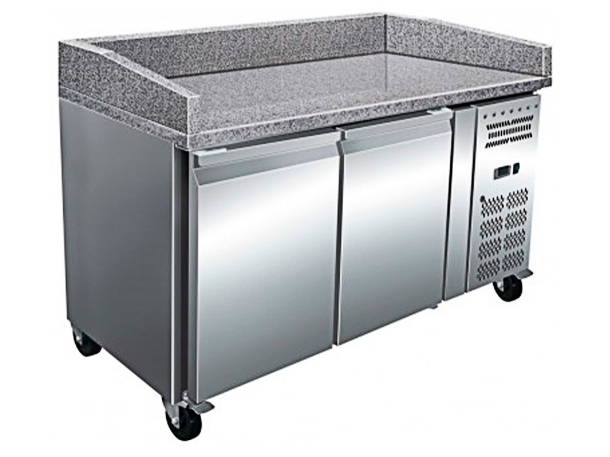 Mesa refrigerada euronorm preparación pizzas encimera de granito fondo 800 PZ2600TN de CLIMA HOSTELERÍA con desescarche y evaporación automática.