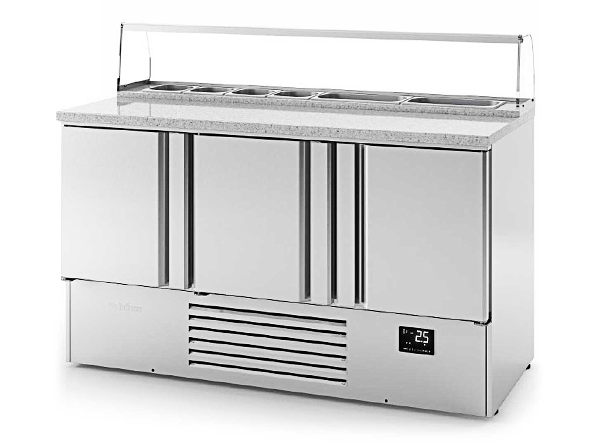 Mesa refrigerada ME 1003 PIZZA de INFRICO, en acero inoxidable AISI 304 y estructura compacta totalmente inyectada.