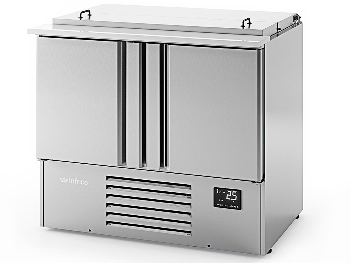 Mesa refrigerada para ensaladas ME 1000 BAN de INFRICO, en acero inoxidable AISI 304 y estructura compacta totalmente inyectada.