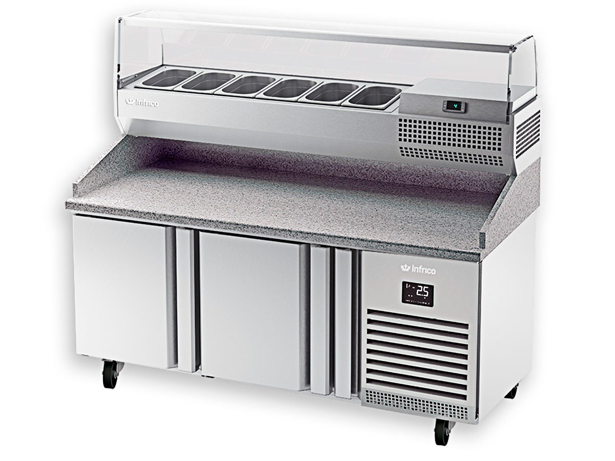 Mesa refrigerada para pizza MPG 1490 de INFRICO, en acero inoxidable AISI 304 y estructura compacta totalmente inyectada.
