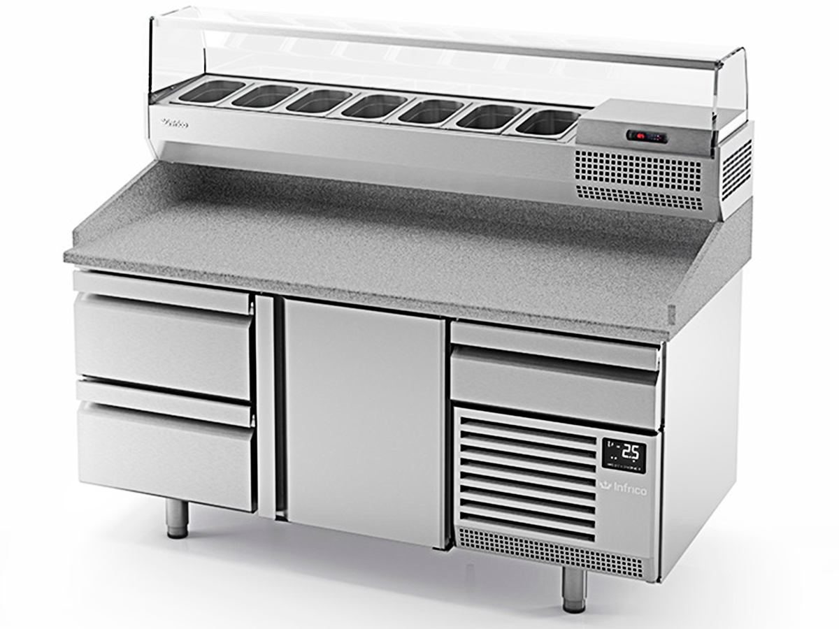 Mesa refrigerada pizza MP 1740 CN de INFRICO, en acero inoxidable AISI 304 y estructura compacta totalmente inyectada.