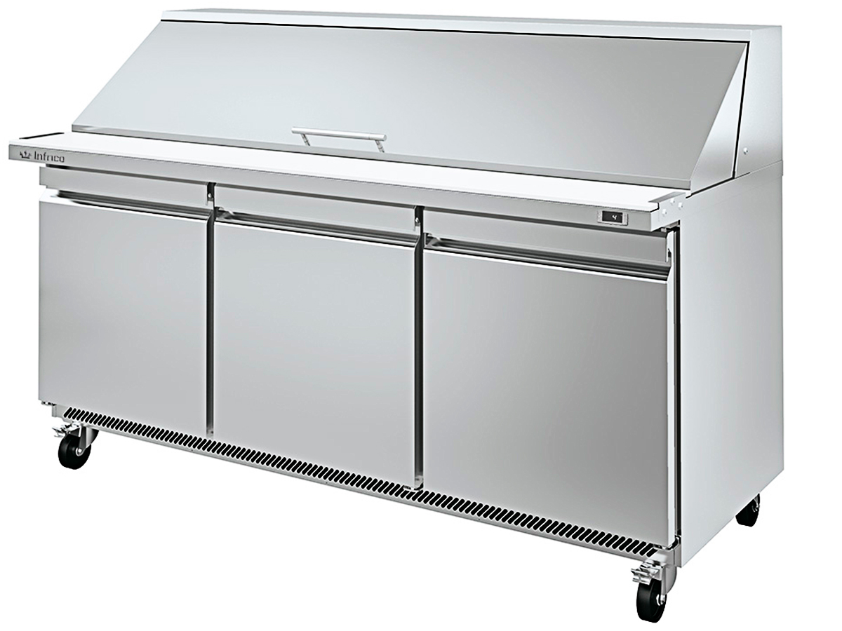 Mesa undercounter de refrigeración para ensaladas/sandwiches megatop UC 72 PMT de INFRICO, con sistema de condensación ventilada y evaporación forzada.