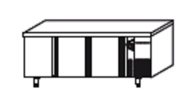 – Encimera de acero inox AISI-304 18/10 con frente curvo y peto trasero sanitario de 100 mm (opcional sin peto según modelo).