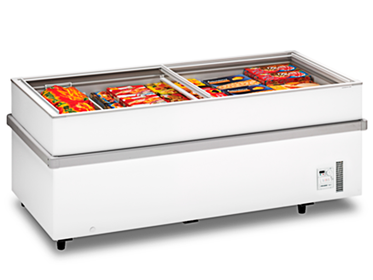 Congelador 900 CHV/V de EUROFRED, posibilidad de poner productos por debajo de los que se exhiben.