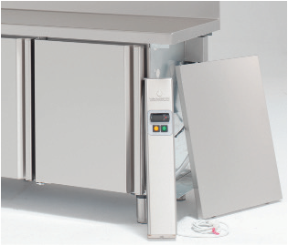 – Puertas de apertura reversible, con sistema de cierre automático y burlete magnético (permanece abierta al superar los 90° de apertura)