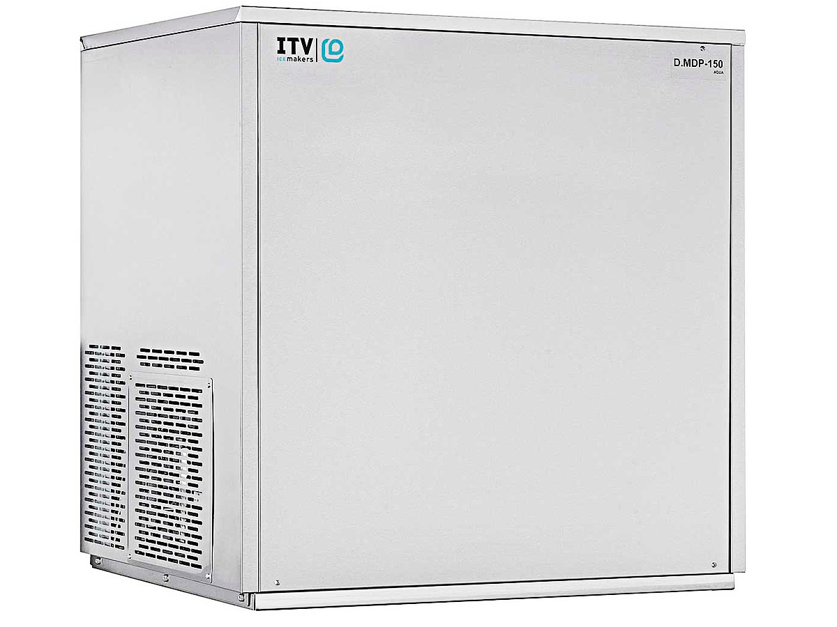 Máquina de hielo modular DELTA MDP150 de ITV, con moderno sistema de propulsión por medio de inyectores semi-elásticos, que evitan el problema de cal y otras impurezas del agua.