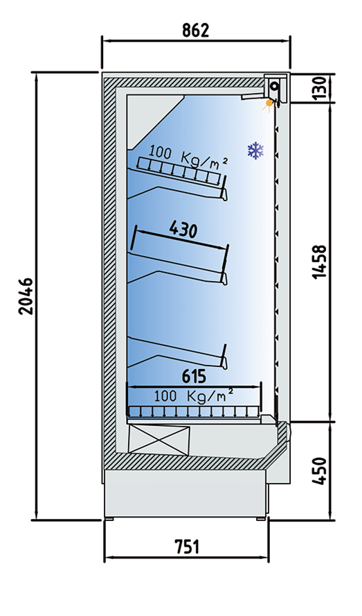 – Modelos M2: Temperatura producto -1ºC/ +7ºC UNE-EN ISO 23953 apropiado para lácteos, delis y embutidos.