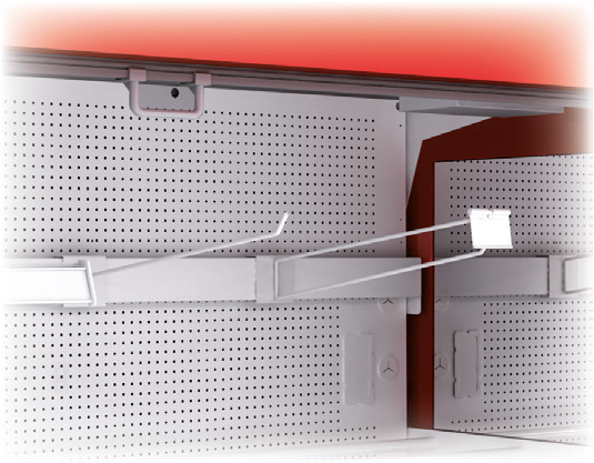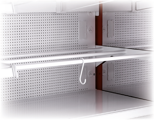– Estantes regulables en altura y ángulo, con porta-precios de 40 mm incluidos.