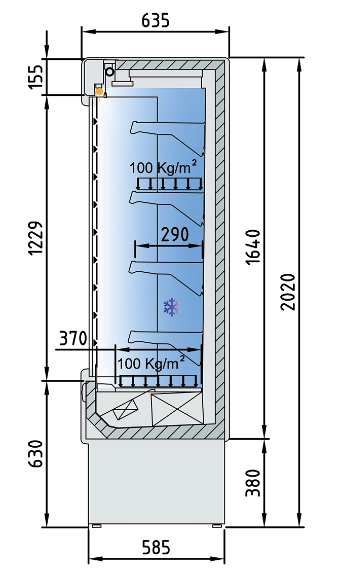 Todas nuestras vitrinas murales son polivalentes y están preparadas para carnes, lácteos y verduras con tan solo regular los parámetros.