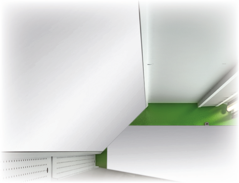 – Laterales cerrados con cristal y terminación en capa de acero plastificado gris RAL 7040 (espesor 30 mm/precio independiente). Para modelos M-8R si incluye juego de costados en el precio, a elegir costados VISIÓN o CIEGO + ESPEJO.
