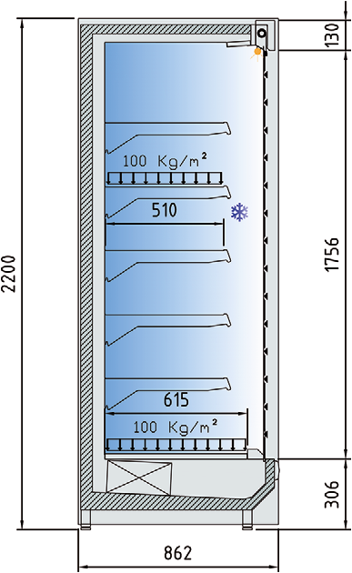 – Modelos M1: Temperatura producto -1ºC/ +5ºC UNE-EN ISO 23953 apropiado para carnes.