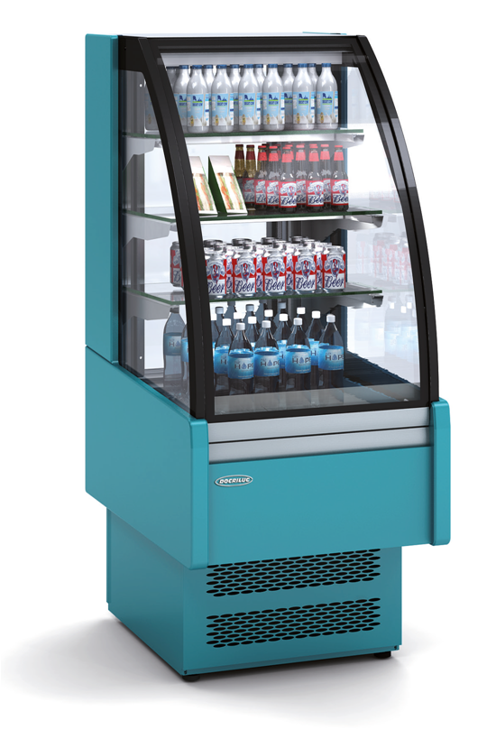 Estantes de cristal fijos (en altura e inclinación), con iluminación LED. Aislamiento de poliuretano inyectado, densidad 40 Kg/m³, bajo GWP y cero efecto ODP. Evaporador ventilado. Descarche automático con evaporación automática.