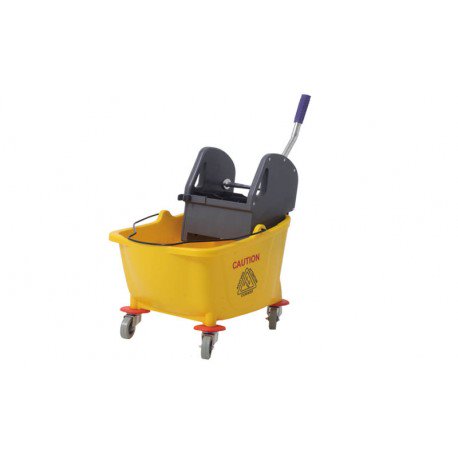 Cubo con escurridor 32L, prensa y ruedas. Fabricado en polipropileno de color amarillo.