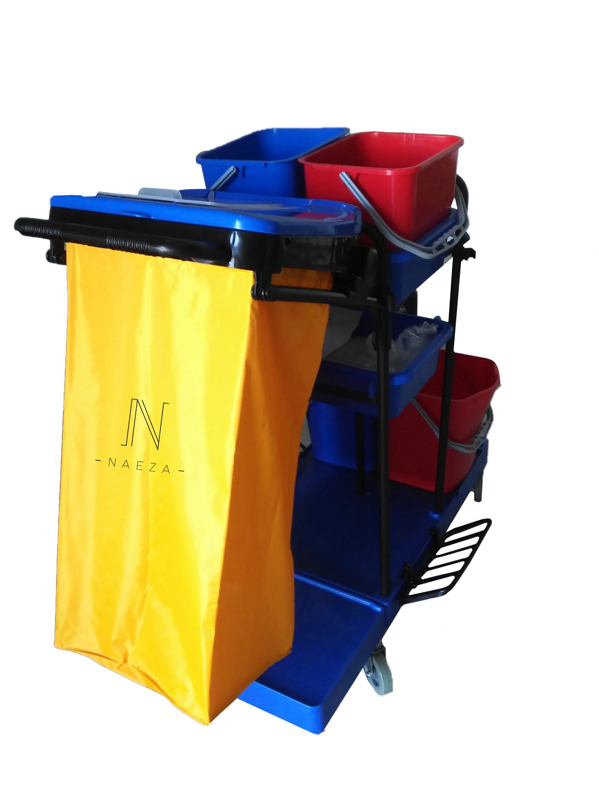 Carro de limpieza de gran resistencia y capacidad de carga con plataforma delantera.