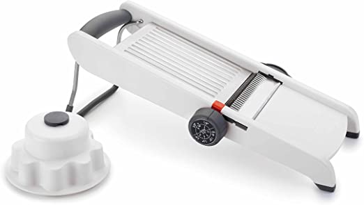 Mandolina robusta y funcional Gira la rueda para seleccionar el espesor de corte o el tipo de juliana que desea obtener.