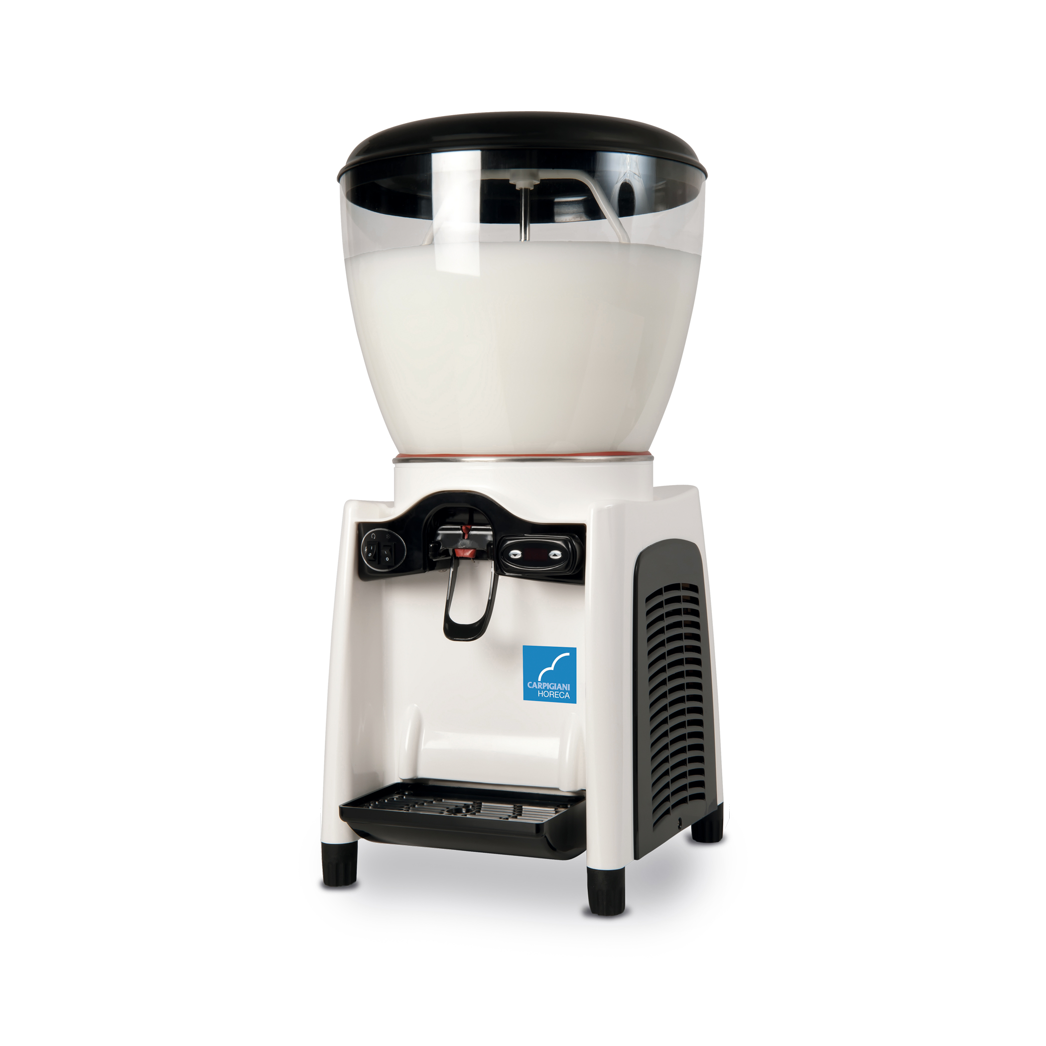 • Las nuevas maquinas Drink Magic, disponibles en las versiones de 1 cuba de 12 a 20 litros cada una, han sido diseñadas para enfriar y dispensar cualquier tipo de bebida, té, café, leche y zumos naturales. Tienen ademas un grifo especial que permite dispensar zumos de fruta natural denso y/o con pulpa. • Capacidad productiva de cada depósito (12lt o 20lt). • Depósitos extraíbles de policarbonato. • Nuevo grifo para servir bebida con o sin pulpa. • Mezcla de la bebida mediante agitador.