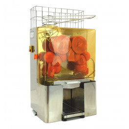 - Completamente automático. Únicamente hay que colocar las naranjas en la pila, sin cortarlas ni pelarlas, extrayéndose el zumo sin necesidad de más acciones. Los desperdicios son depositados en las dos cubas que hay a ambos lados.