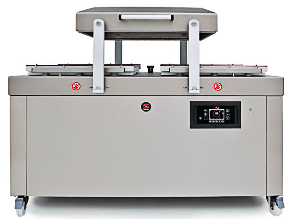 Envasadora al vacío industrial de pie doble cámara gama sensor ultra serie 6000 de SAMMIC, equipada con bomba Busch.